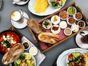 Als u ooit in een Israelisch restaurant of hotel bent geweest dan weet u wat wij bedoelen. Naast een enorme verscheidenheid aan rauwe groenten en groentesalades, vindt u shakshuka (eieren gepocheerd in tomatensaus met peper en ui), versgebakken brood, een grote verscheidenheid aan kazen, pap en andere warme lekkernijen om je dag een jump start te geven.
