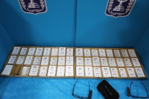 OrCam MyEye-apparaten beschikbaar naast een stapel papieren stembiljetten op een Israëlisch stembureau. Foto: OrCam Technologies