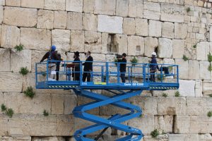 Het onderste gedeelte van de Westelijke Muur, dat is samengesteld uit de originele stenen van de muur, lijdt aan corrosie. Dit jaar, werd er veel “kaf” verwijderd. Om dit op te lossen, worden de stenen met een bindmiddel op basis van natuurlijke kalk (de steen consolidatie) behandeld. Dit versterkt de lagen en stopt het afbrokkelen.