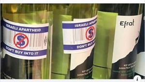Er zijn weer Israel haters actief, zoals blijkt uit bovenstaande foto. Een van de lezers van Joods.nl zond ons een foto toe van flessen Israelische wijn bij één van de Hema vestigingen met BDS-boycot stickers erop.