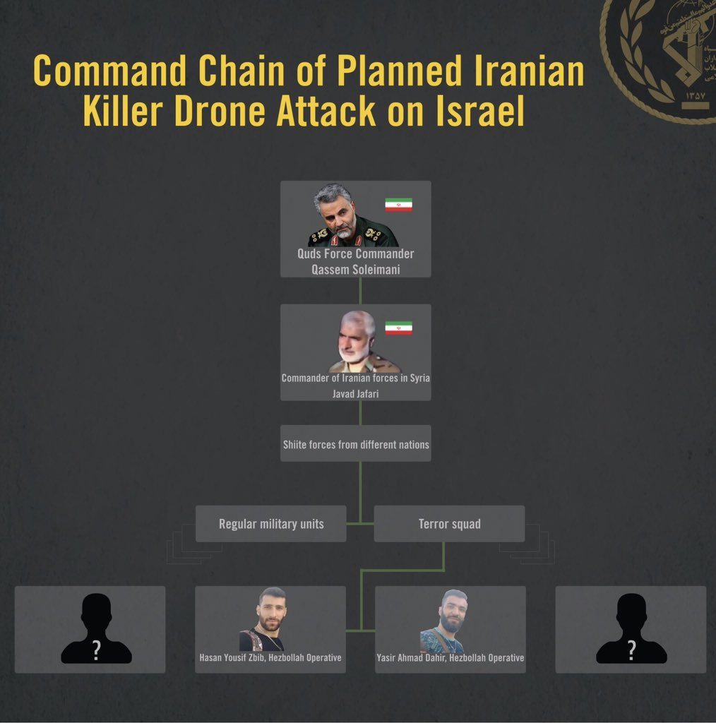 Naast de verklaring in de Perzische taal publiceerde de IDF een organigram die de verbanden liet zien tussen Quds Force-hoofd majoor Gen. Qassem Soleimani, Ghafari en de twee Hezbollah strijders die op zaterdagavond werden gedood bij de Israëlische aanval.