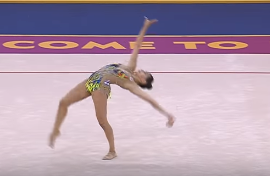 De 20-jarige Ashram stond na de eerste ronde op de eerste plaats, maar maakte verschillende onnauwkeurigheden die haar uiteindelijk op de derde plaats deden belanden met een totale score van 89.700, achter de identieke Russische tweelingen Dina en Arina Averina die respectievelijk goud en zilver wonnen.