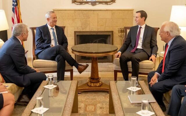 Senior Witte Huis adviseur Jared Kushner en andere Amerikaanse topambtenaren hebben maandag voor het eerst een ontmoeting gehad met leiders van de Blue & White Partij, Benny Gantz en Yair Lapid, te midden van inspanningen van de politici om een nieuwe regeringscoalitie in elkaar te zetten.