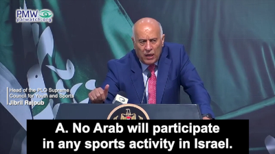 Onder de voorbeelden wees de waakhond erop dat na een wedstrijd tussen Palestijnse en Israëlische kinderen, georganiseerd door het Peres Centre for Peace, in de nasleep van de Gaza-oorlog in 2014, Rajoub zei dat “elke activiteit van normalisatie in sport met de zionistische vijand een misdaad tegen de menselijkheid is.”