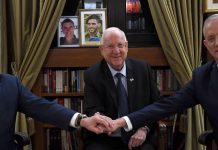 De leiders van Blue & White, Benny Gantz en Yair Lapid en de leider van Yisrael Beytenu, Avigdor Liberman "slaan terug"naar Netanyahu