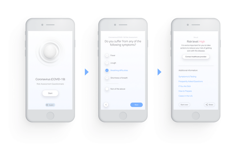 De vragenlijst van Diagnostics Robotics verzamelt symptomatische gegevens en maakt beoordeling en monitoring op afstand mogelijk. In Israël is de app in vier talen beschikbaar: Engels, Hebreeuws, Russisch en Arabisch.