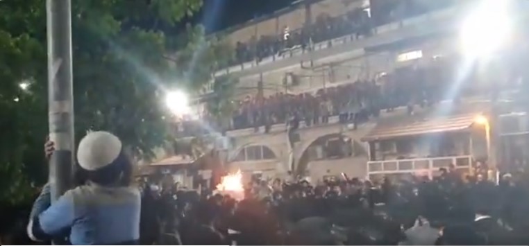 - Yuval Segev van Army Radio publiceert beelden van één vreugdevuur BINNEN een gebouw in Mea Shearim, waar zo’n veertig onbeschermde, ontmaskerde ultraorthodoxe bewoners elkaars hand vasthielden en dansten “alsof er geen coronavirus is”, zo verwoordde de nationale religieuze Srugim-website het in zijn kop.