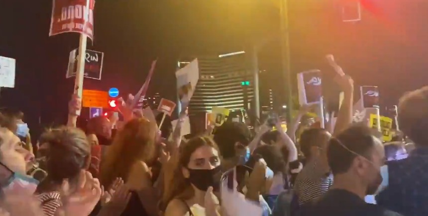 In Tel Aviv werd betoogd door werklozen, zelfstandigen, horeca eigenaren en anderen die tegen het zig-zag corona-beleid van de regering Netanyahu zijn.