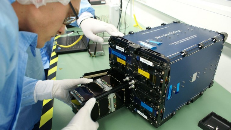 In het kleine laboratorium, dat zo groot is als een schoenendoos en 2,3 kg weegt, zitten in totaal 53 nano-satellieten uit 13 verschillende landen.