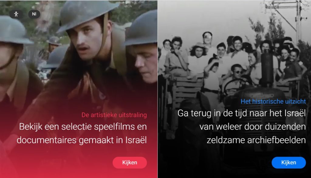 Het platform omvat kijkopties in VOD-formaat, aanvullende tools die de kijkervaring verrijken, zoekmogelijkheden per jaar, herkenningspunt, locatie, onderwerp, publieke figuren en meer. Het platform is gratis beschikbaar in zowel het Hebreeuws als het Engels, en alle visuele inhoud bevat Engelse ondertitels.