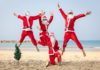 Volleybal spelende kerstmannen gesignaleerd in Tel Aviv