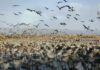 De pelikanen en andere vogels gebruiken de Hula Vallei weer als...