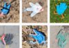 Gebruikte plastic handschoenen worden personages met een boodschap