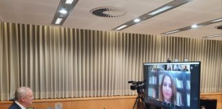 Minister van Defensie Gantz houdt Zoom interview met Arabische journalisten
