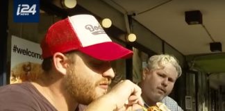 In het restaurant aan de Carlebach straat in Tel Aviv worden de koosjere cheeseburgers op specifiek Amerikaanse wijze bereid.