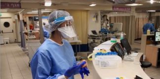 Actrice Moran Attias werd vergezeld in haar nieuwe baan als vrijwilligster op de corona afdeling van het Ichilov-ziekenhuis
